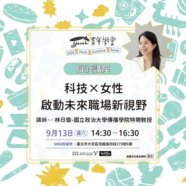 🎯從教育現場到職場挑戰,林日璇教授將分享女性在科技產業中面臨的真實處境與轉機,帶你認識未來職場多元化的樣貌。