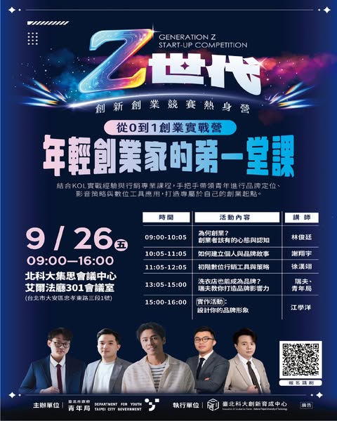 🎼114年度Z世代創新創業競賽|從0到1創業實戰營 年輕創業家的第一堂課