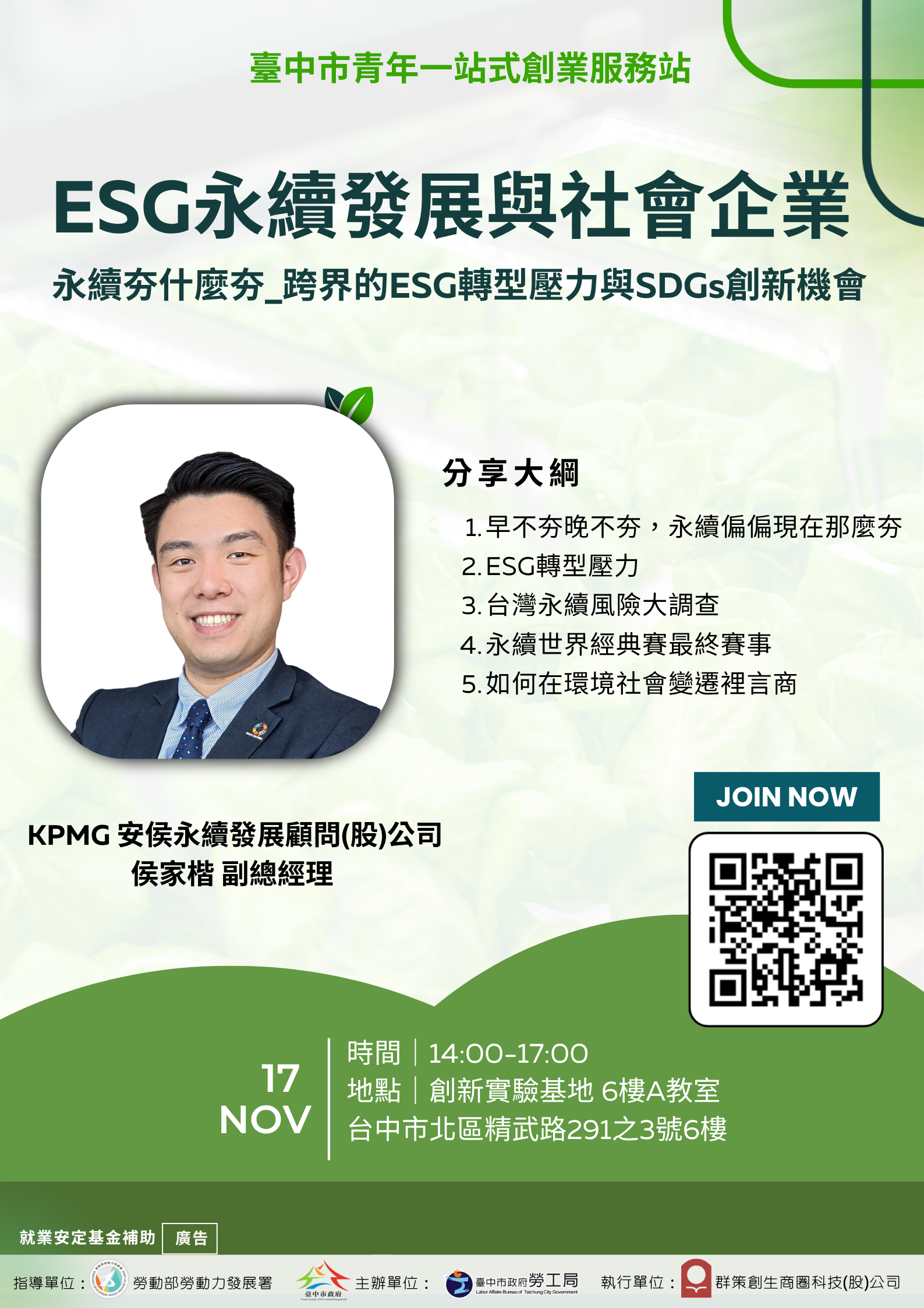 【創業職能培力課程】114/11/17 ESG永續發展與社會企業