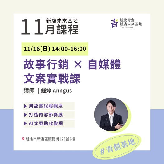 新店未來基地11月將帶你用「故事」與「AI 文案」雙引擎,