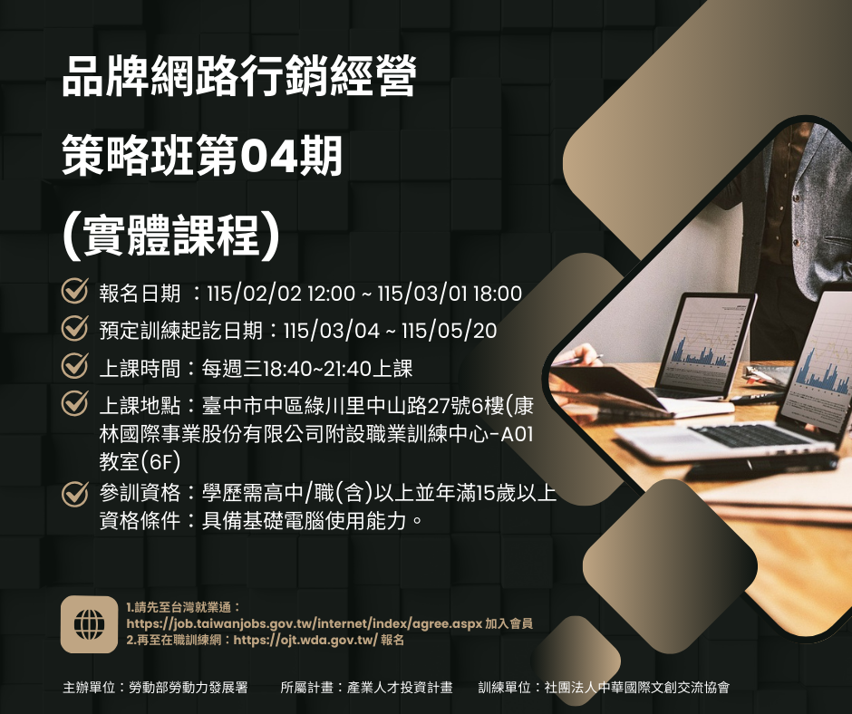 報名網站:https://ojt.wda.gov.tw/ClassSearch/Detail?OCID=169902&plantype=1