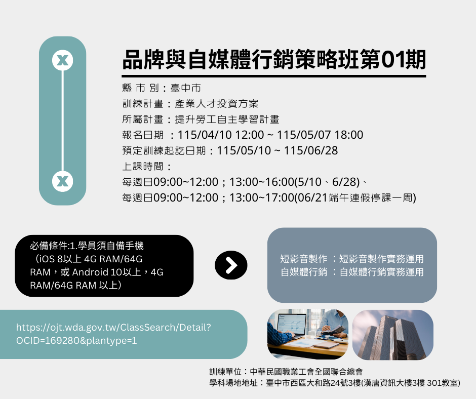 【資訊分享】品牌與自媒體行銷策略班第01(實體課程)