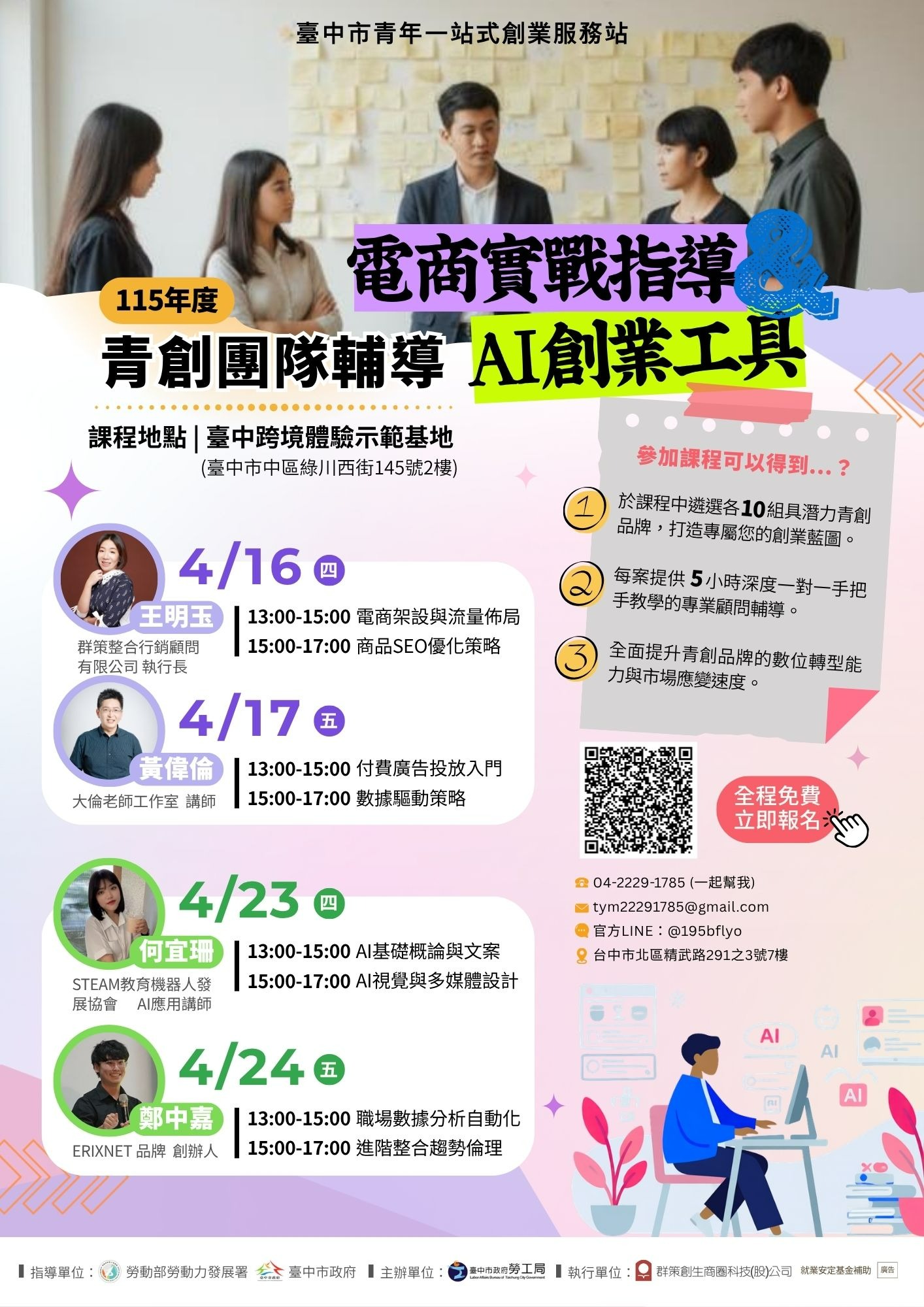 【115年度臺中市青創團隊:電商 X AI實戰輔導,限額招募中!】